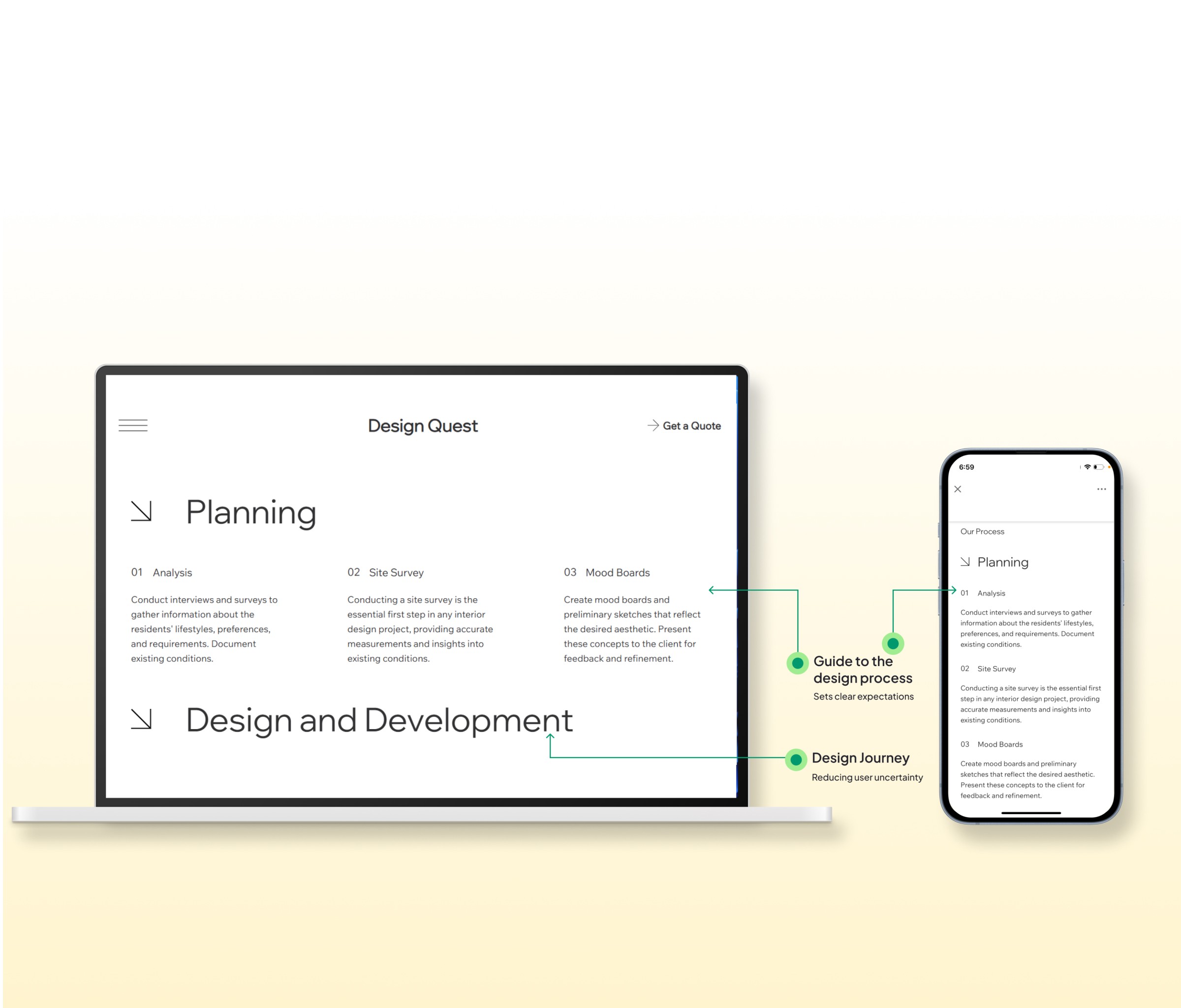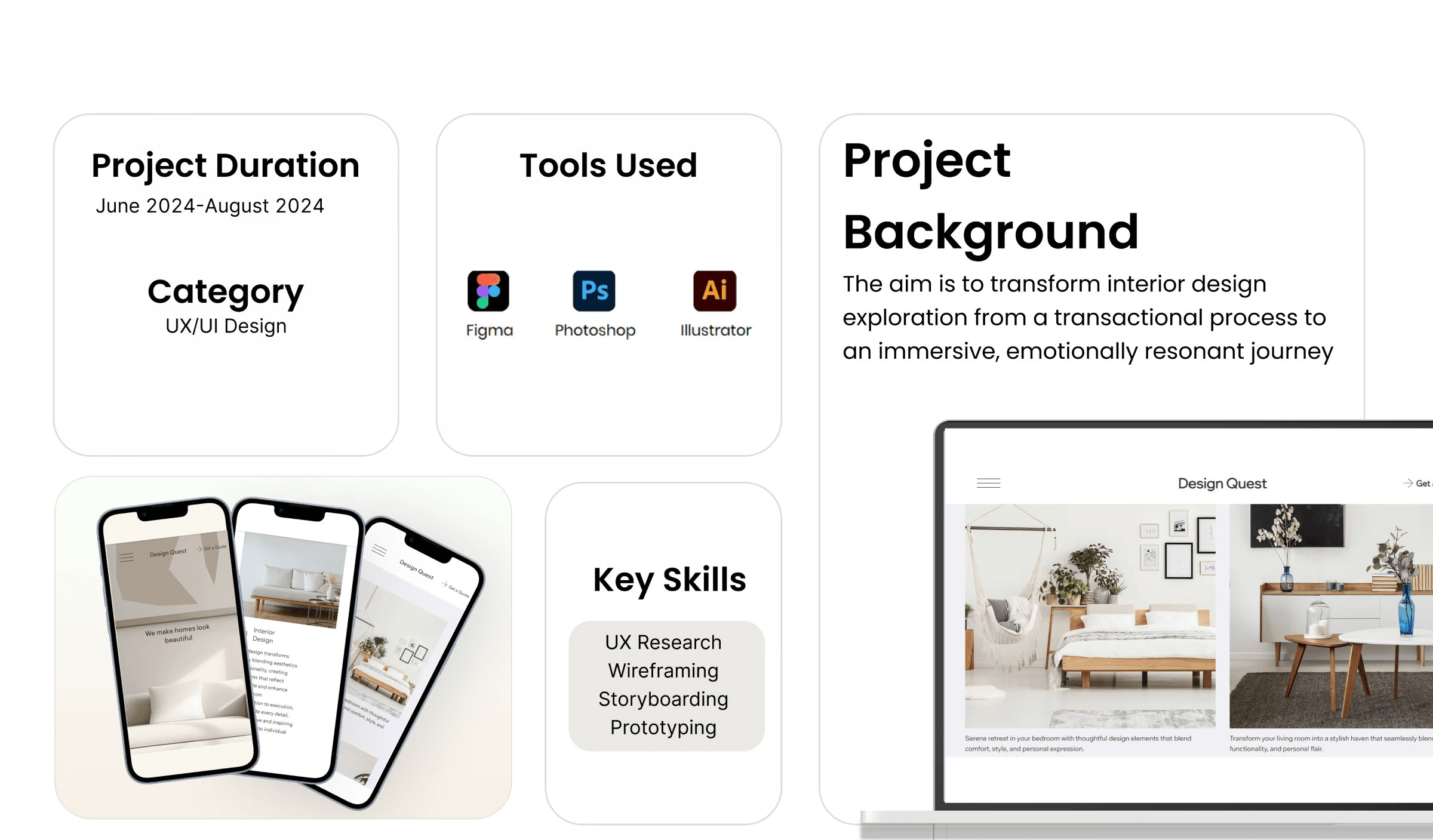 Design Quests stunning physical spaces weren't matched by their digital presence. Despite their portfolio of award-winning interior design work, their website was failing to capture the essence of their craft and was creating friction in their client acquisition process.