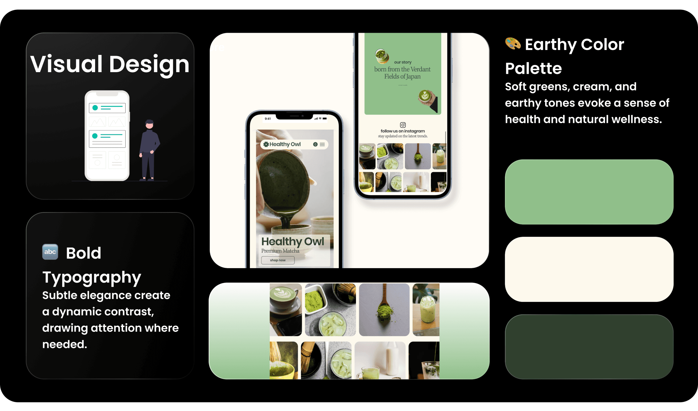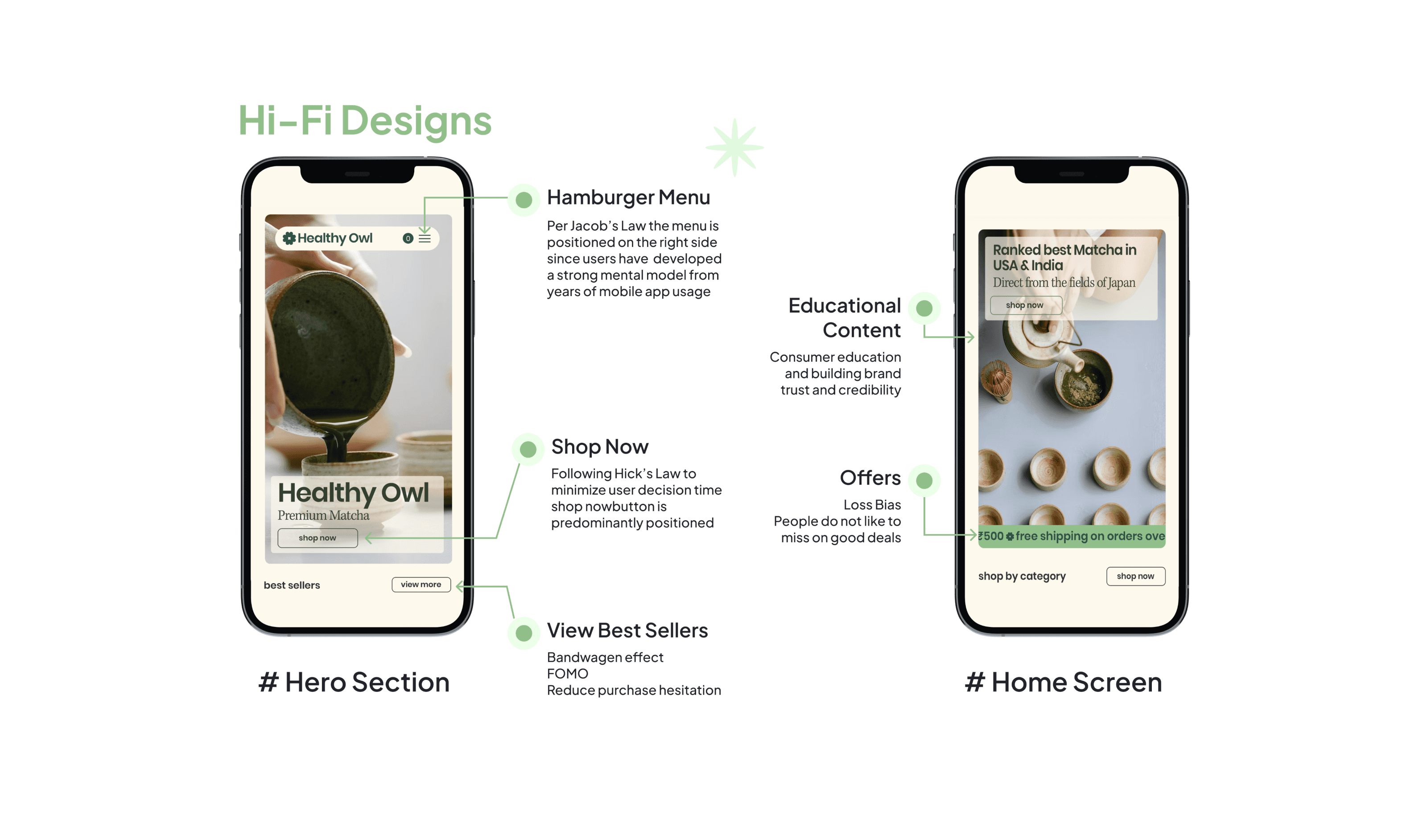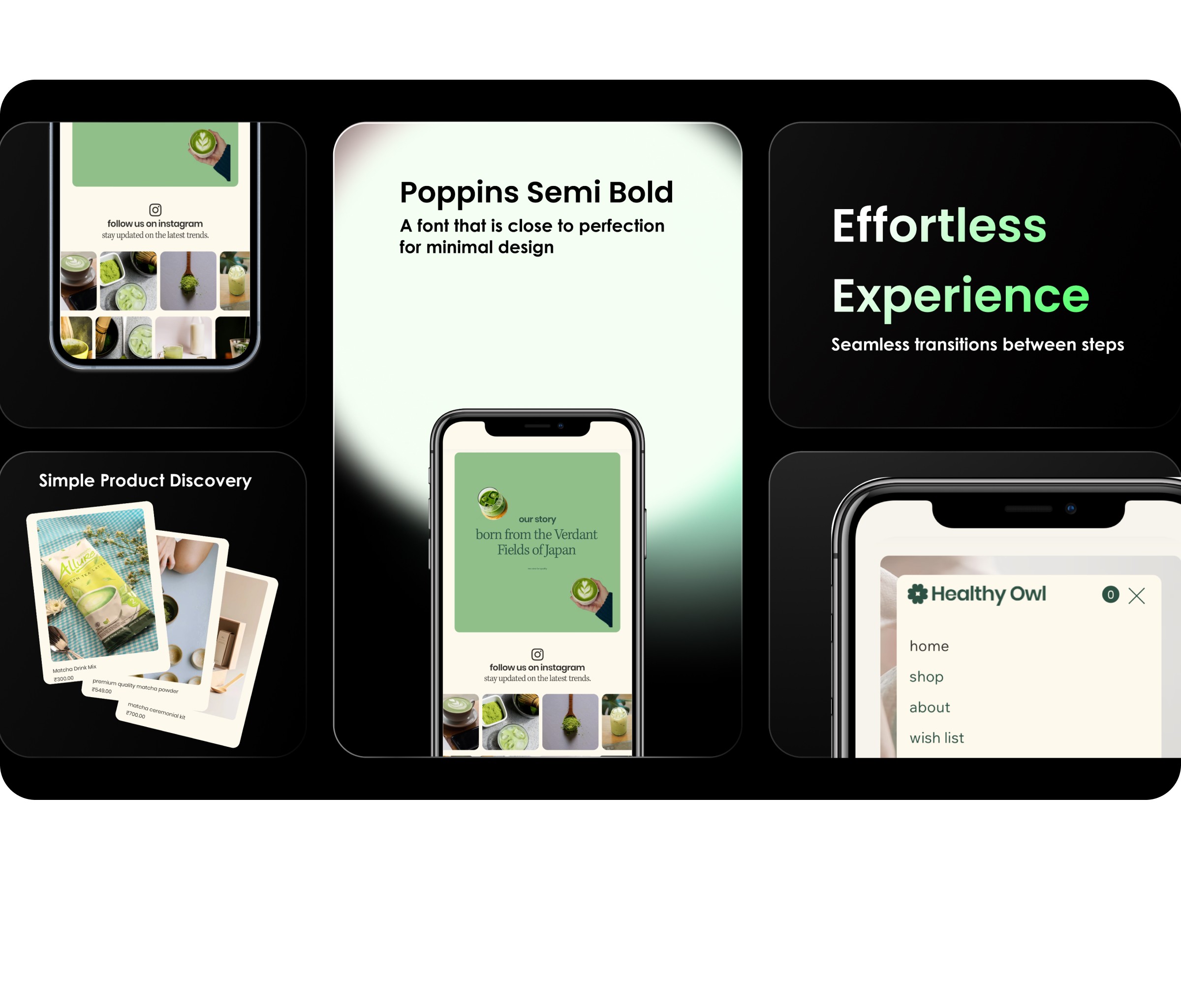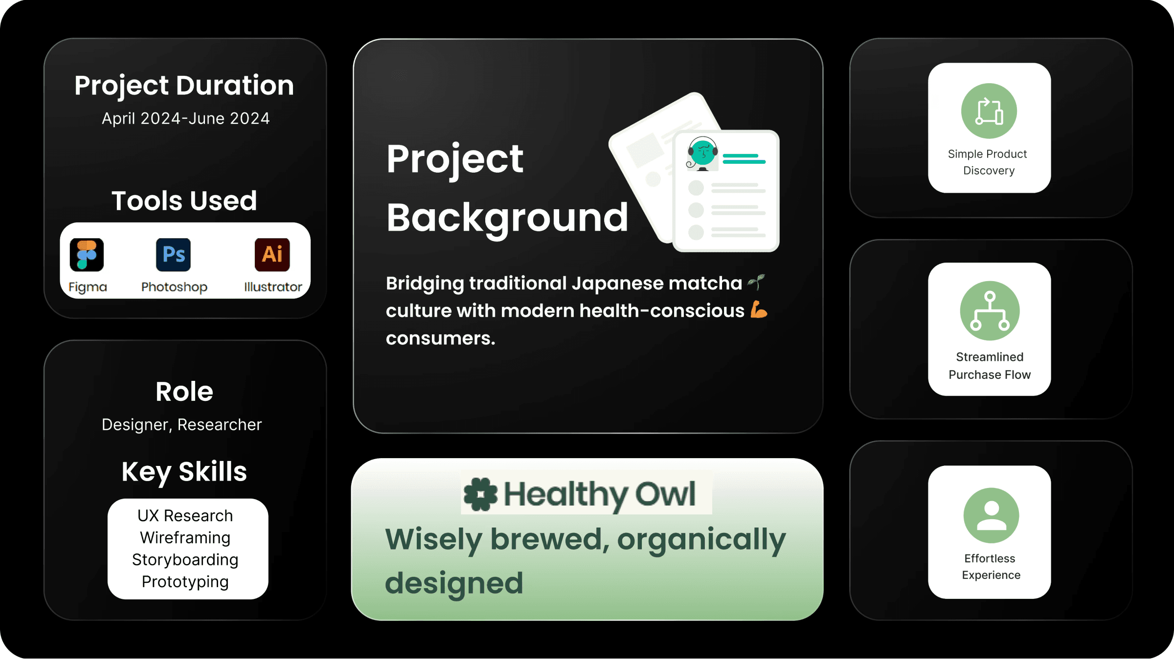 In designing the Healthy Owl app, I addressed the key user pain point of confusion around matcha grades by implementing an intuitive, storytelling-driven interface.
