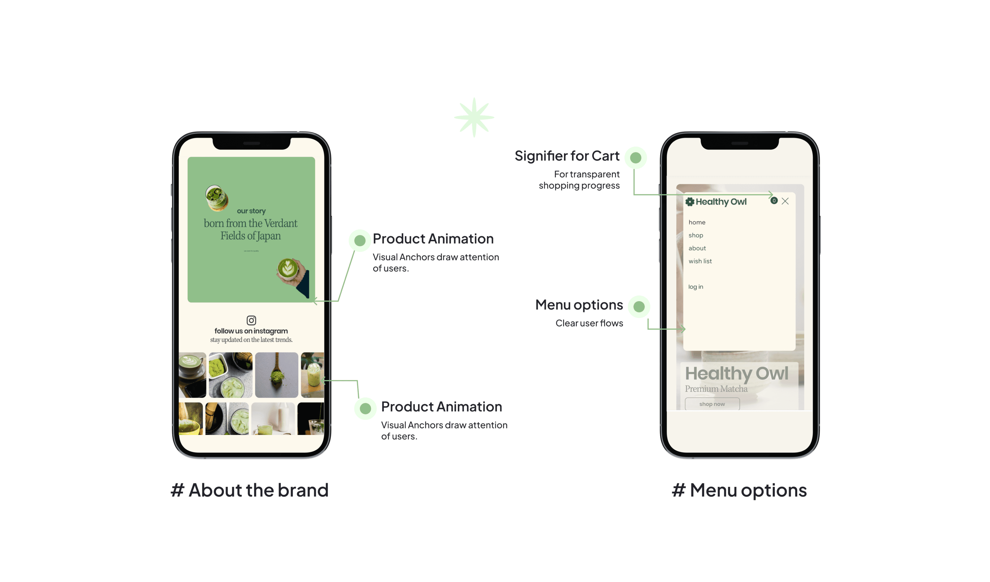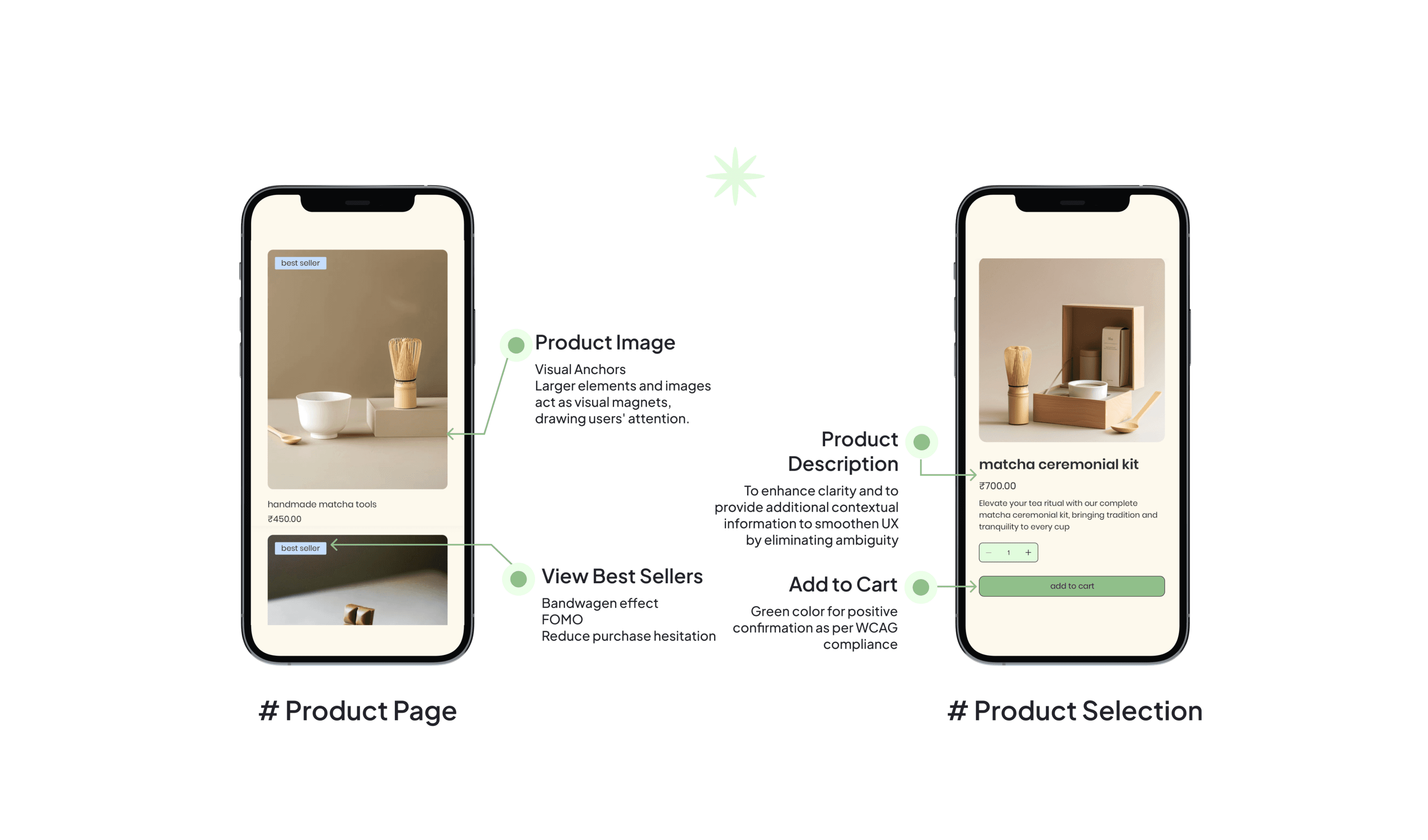 To address these pain points, the design must focus on delivering an intuitive, visually appealing, and user-friendly experience that highlights matcha’s story while simplifying the path to purchase.
